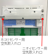 2.汚れがひどいときは、台所用中性洗剤を溶かしたぬるま湯または水につけおきし、洗剤が残らないように十分すすぎ洗いしてください。3.格子の間のお手入れにはやわらかいブラシを使用してください。・3か月に1度レンズをお手入れしてください。・ホコリがなどがたまったときに空気取り入れ口をお手入れしてください。◆ 3か月に一度のお手入れ・センサーレンズのふき取りをしてください。<お手入れの手順>1.プレフィルター(左側)、ホコリ/PM2.5センサー用空気取入れ口のカバーを外します。