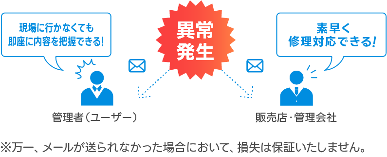 異常お知らせメールは、事前にご登録いただいたメールアドレスへ自動送信されます。